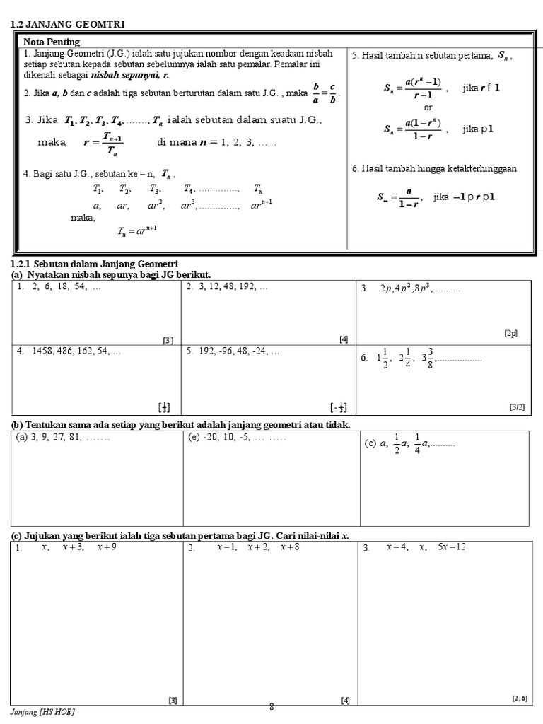 Soalan Kbat Janjang Geometri. Indeks ialah satu contoh bagi janjang geometri kerana nisbah sepunya. (a) sebutan pertama dan nisbah sepunya .